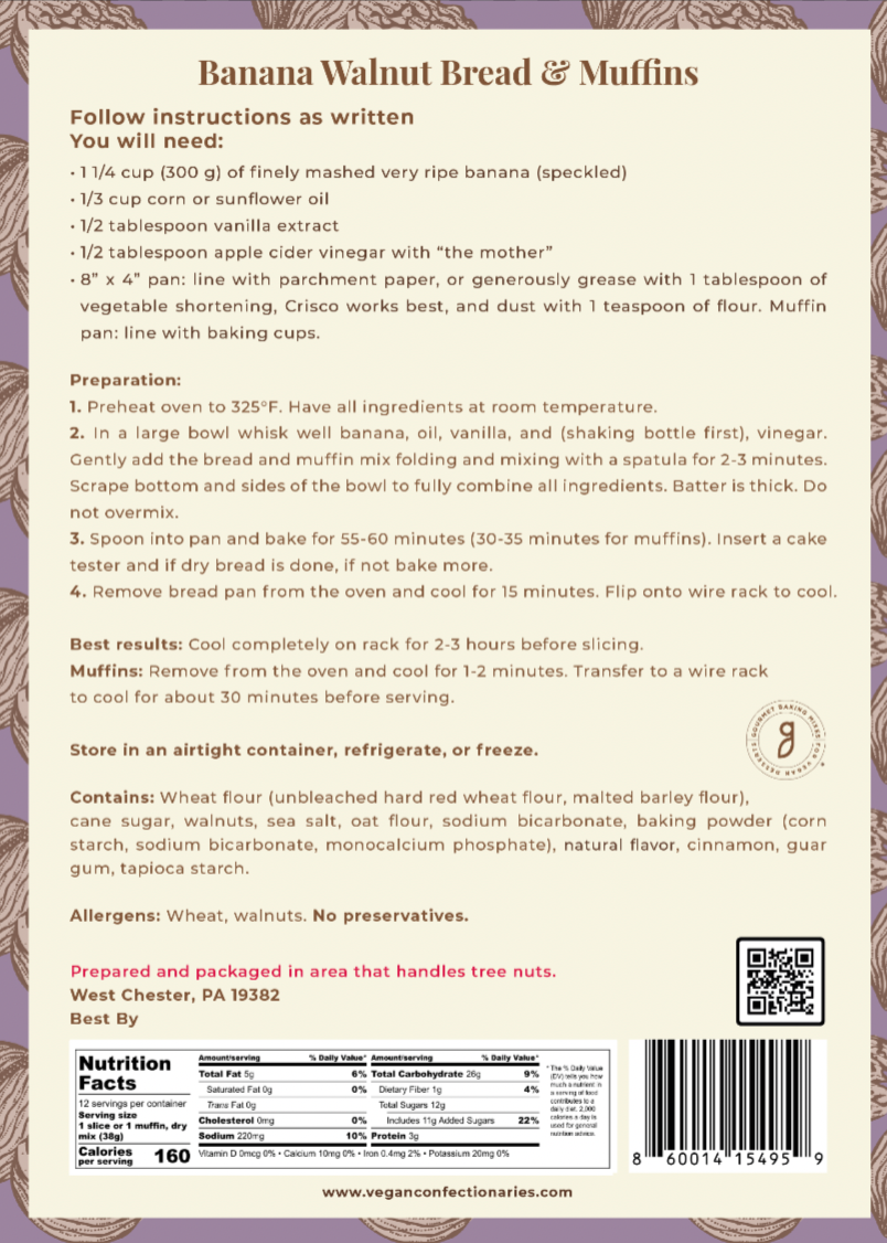 šš§ Ā Delicious vegan banana walnut bread mix packed with Omega-3 & antioxidants. No frosting needed! ⨠Easy prep with fresh bananas. Perfect for breakfast or dessert. Makes 12 muffins! š§